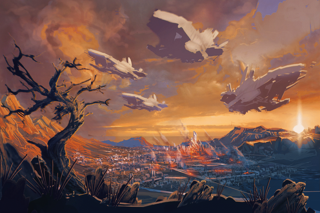 Above: Stenax Forces leave a ravaged Draukyze to return to their homeworld, Stenos